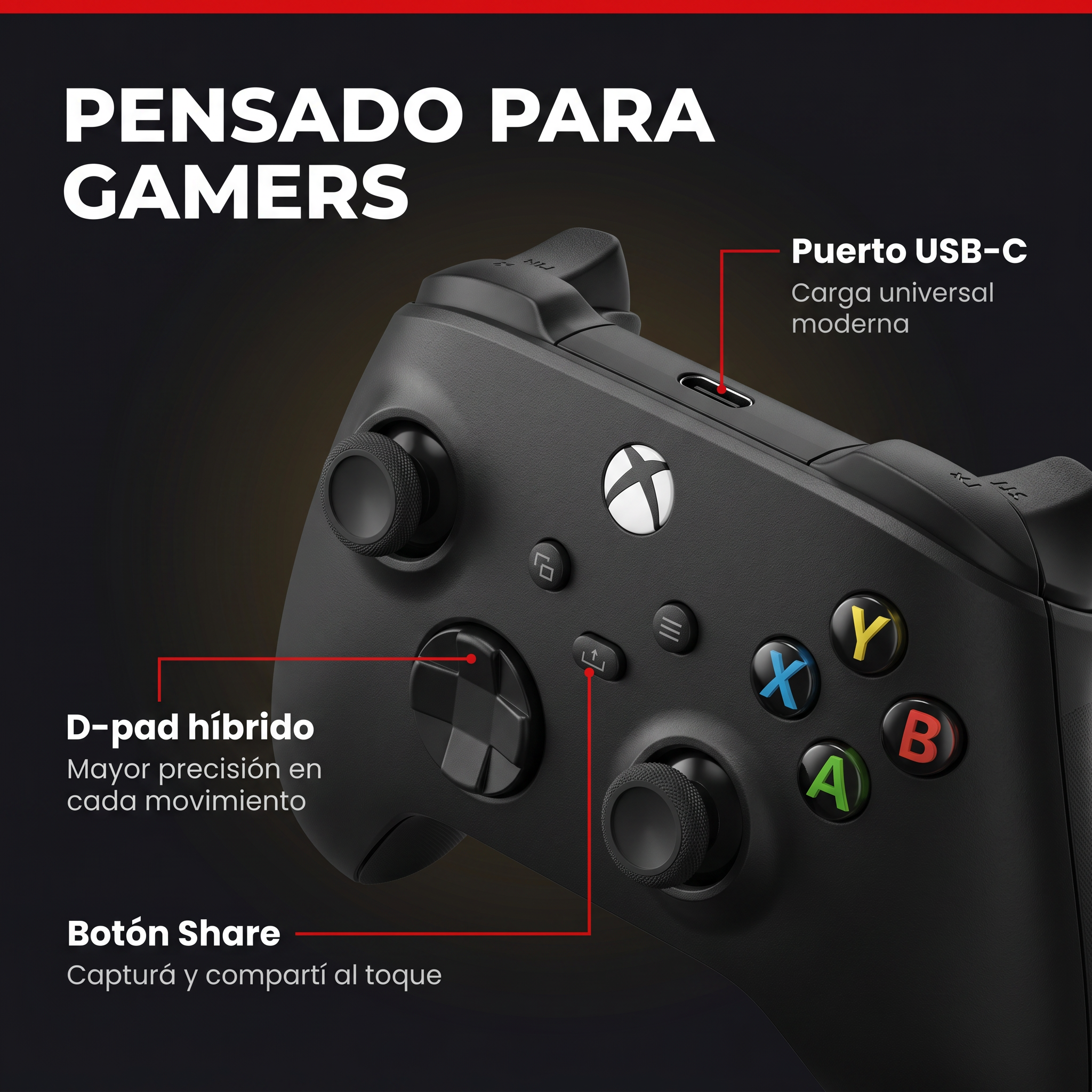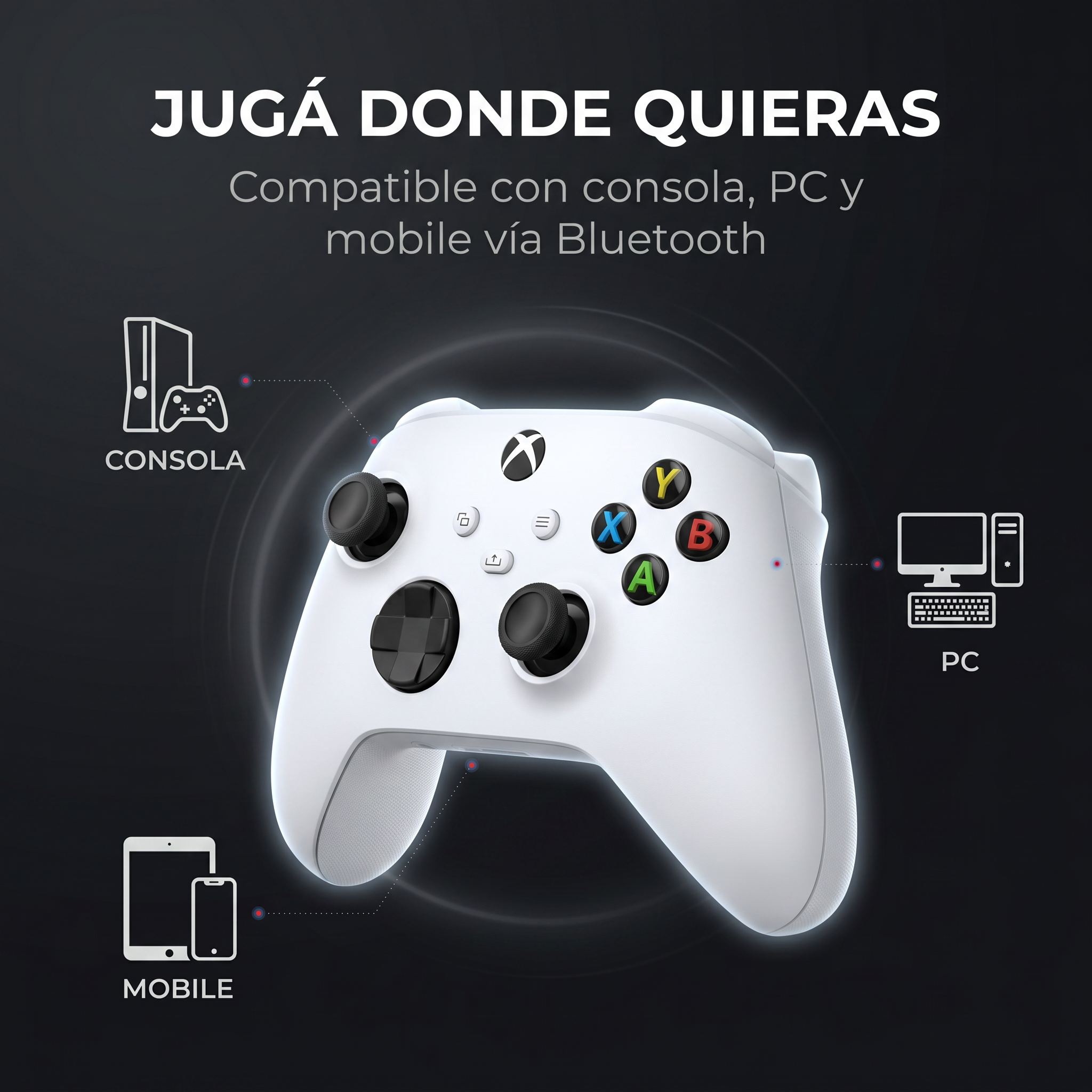 El mismo control te sigue en todos tus dispositivos. Conectalo por Bluetooth a tu PC con Windows, tu notebook, tu celular Android o iPhone, o sincronizalo de forma nativa con tu consola Xbox. Un solo joystick para todo.
